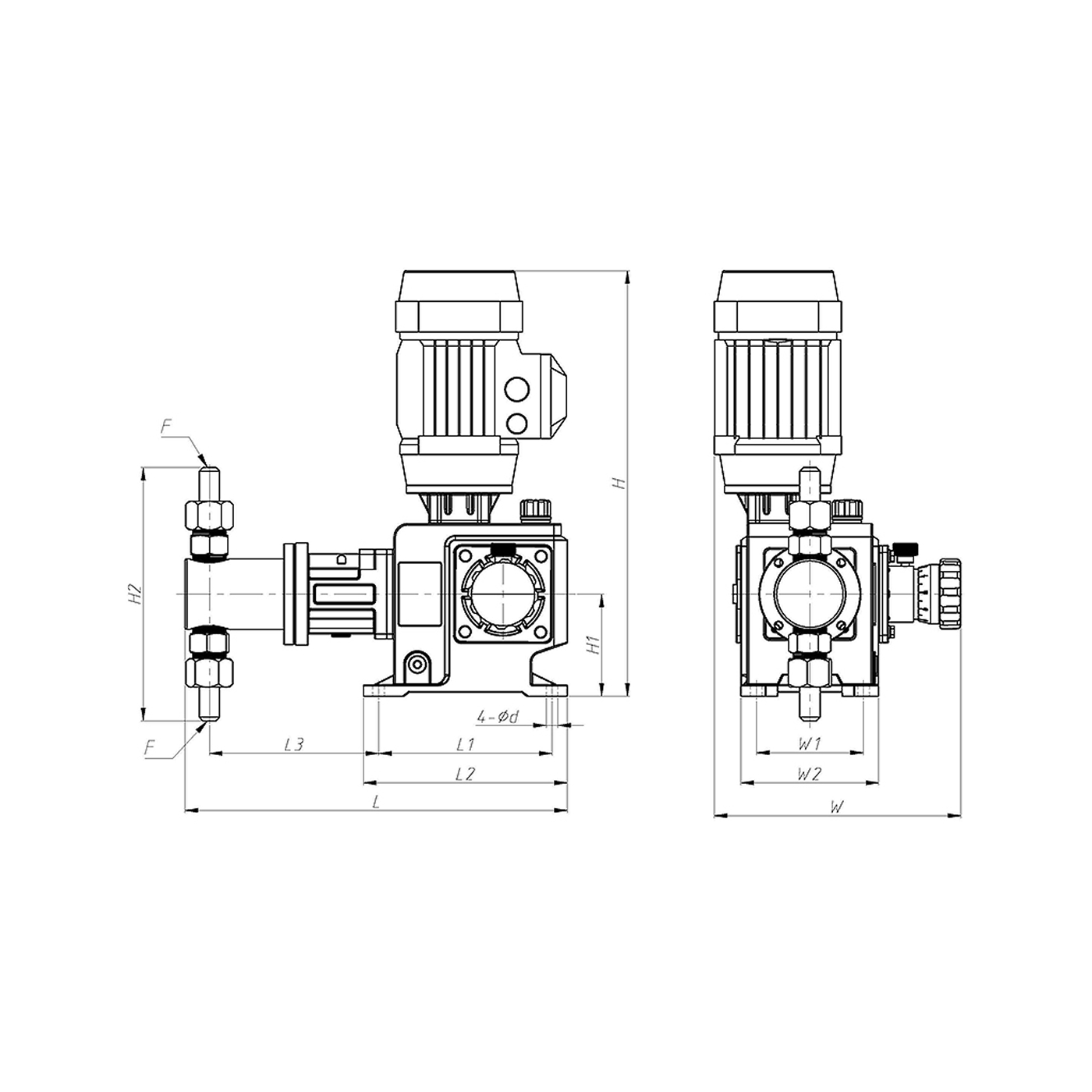 Насос оснащен ручным маховиком, который позволяет плавно изменять расход в диапазоне 0–100%.